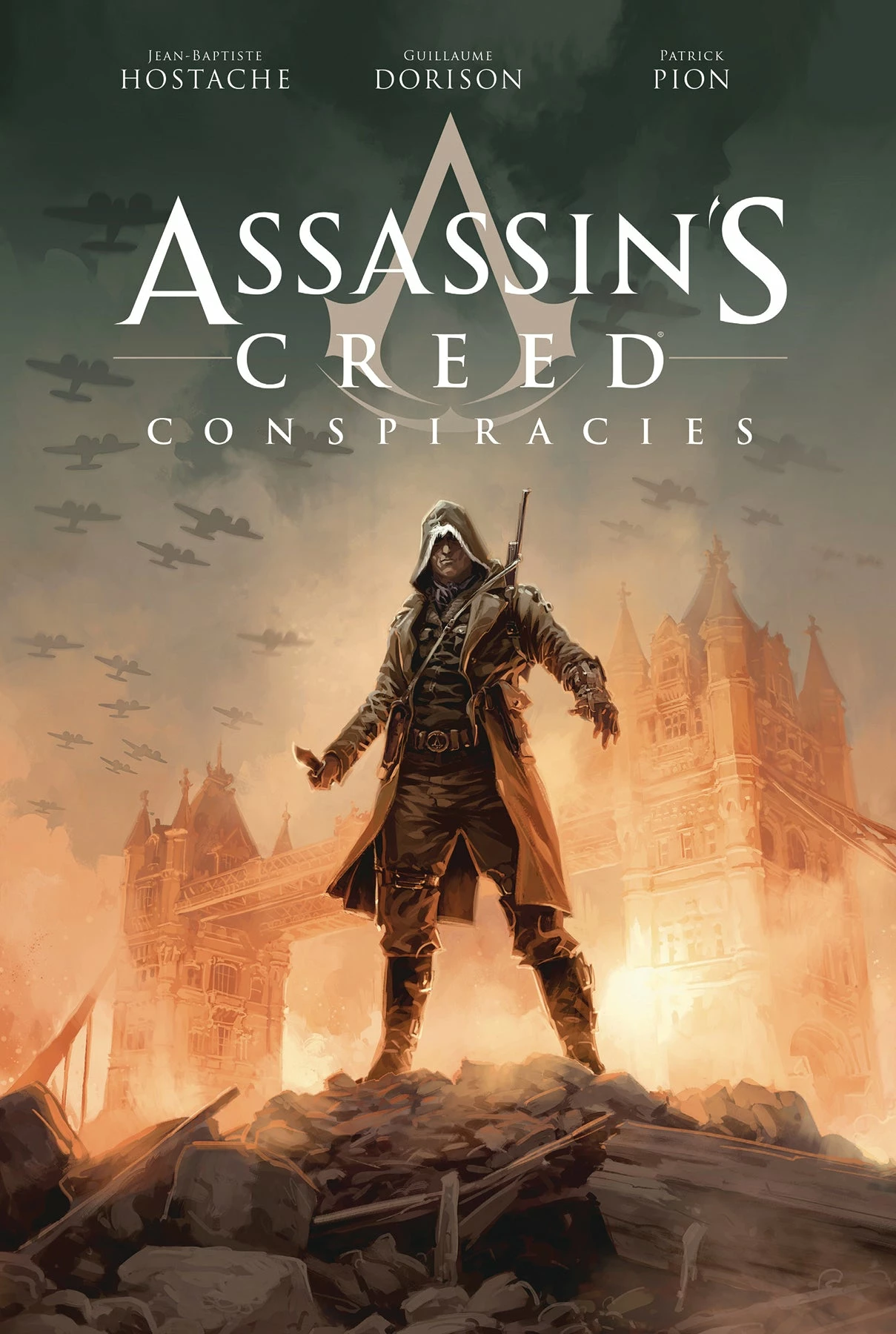 A new Assassin arrives on the stage of World War II! When London dockworker Eddie Gorm loses his family to Nazi bombing, he enters the war against the Templars…but can he balance his quest for revenge against the secrets of a devastating new atomic weapon? Artist Jean-Baptiste Hostache (Lords of War, Clockwerx) unleashes the vivid fires of the Blitz, while Patrick Pion (Devil May Cry) details stealthy action in the style of the smash-hit game series Assassin’s Creed!